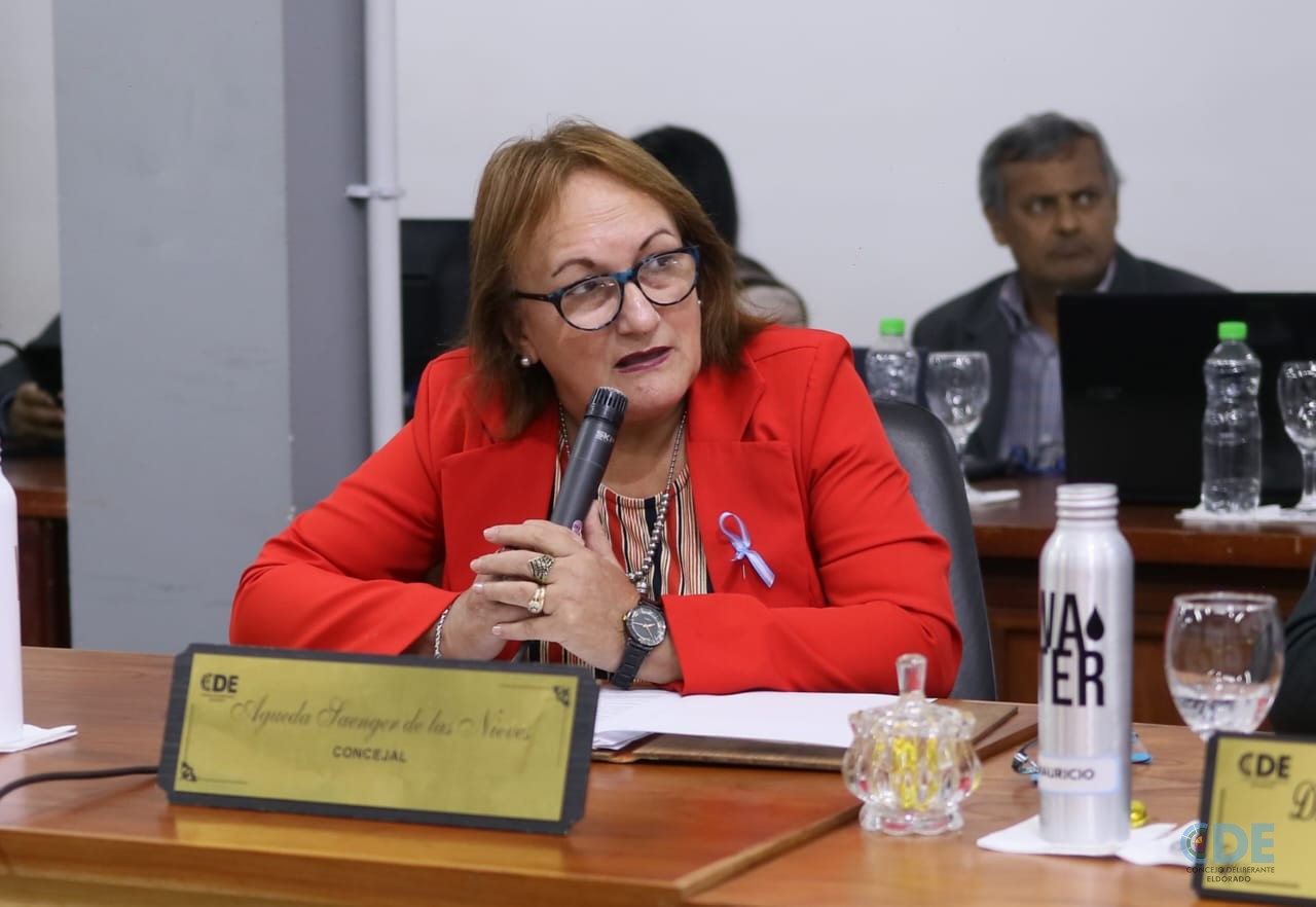 La Sesión fue presidida por la titular del Cuerpo, Dra. Lorena Cardozo y acompañado por los Concejales; Tec. Bernardino Bobadilla, Lic. Rosa Margarita Kurtz, Dr. Sebastián Tiozzo, Dr. Mauricio Acevedo Leal, Dr. Augusto Daniel González y Tec. Agueda Saenger.
