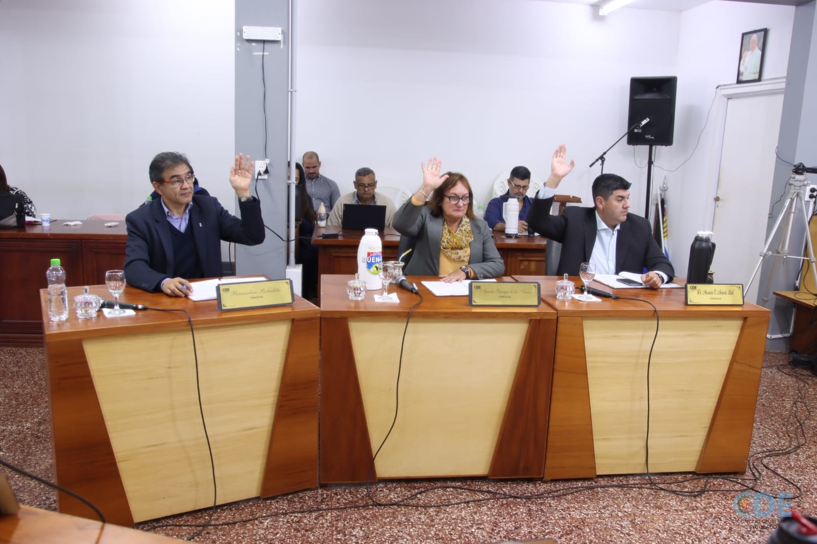 La Sesión que se desarrolló en el Recinto del CDE, fue presidida por la titular del Cuerpo, Dra. Lorena Cardozo y con la asistencia de los Concejales, Dr. Augusto Daniel González, Dr. Sebastián Tiozzo, Téc. Agueda De Las Nieves Saenger, Téc. Bernardino Bobadilla y Dr. Mauricio Acevedo Leal.