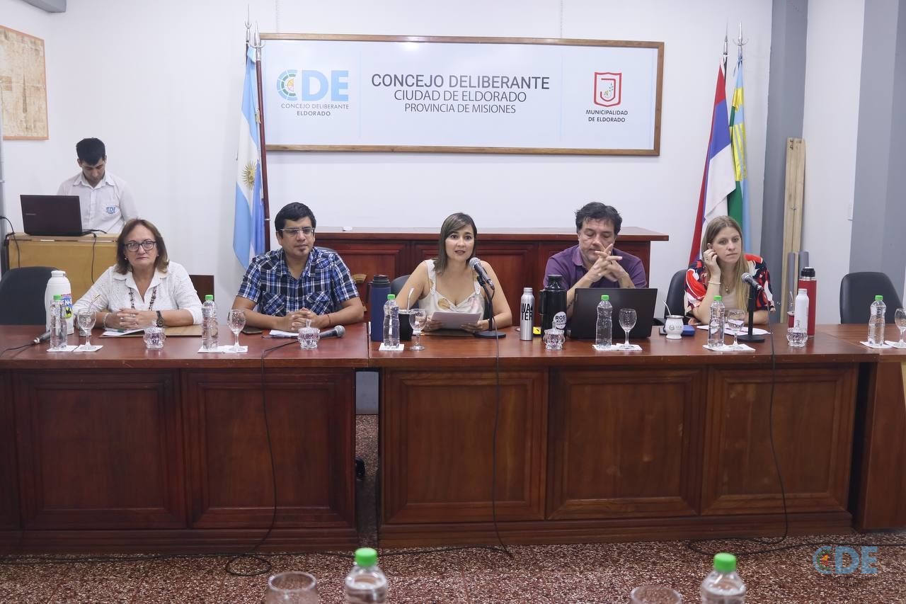 En la mañana de este martes, 7 de noviembre, en el recinto del Concejo Deliberante de Eldorado (CDE), se llevó a cabo una reunión con la presencia de los Concejales; Tec. Águeda Saenger, Dr. Augusto Daniel González, Dr. Sebastián Tiozzo, Lic. Rosa Kurtz y la presidente del CDE, Dra. Lorena Cardozo.
