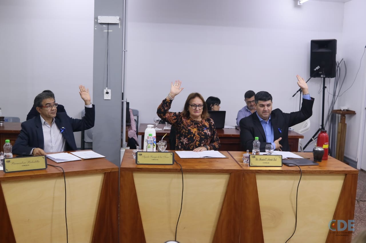La Sesión, que se desarrolló en el Recinto del Deliberativo, fue presidida por la titular del Cuerpo, Dra. Lorena Cardozo y contó con la asistencia de los Concejales; Dr. Augusto Daniel González, Lic. Rosa Kurtz, Dr. Sebastián Tiozzo, Téc. Agueda De Las Nieves Saenger, Téc. Bernardino Bobadilla y Dr. Mauricio Acevedo Leal.